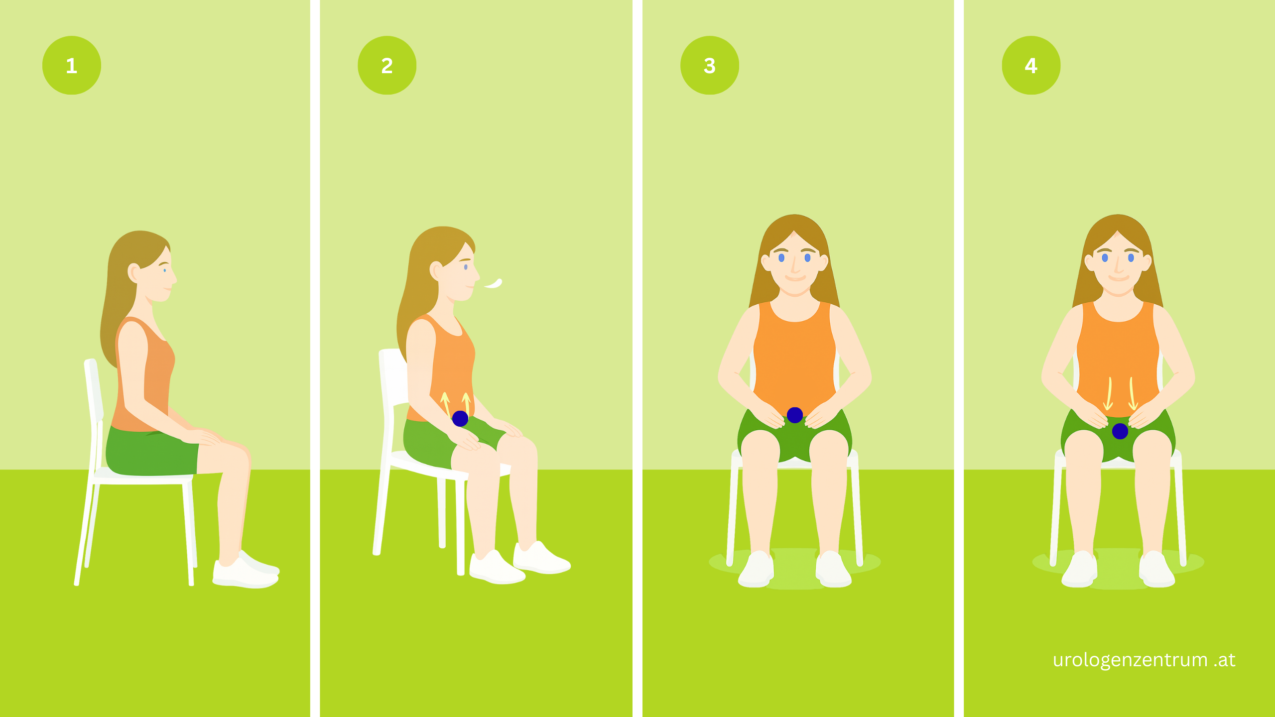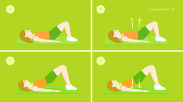 Hinweis: Nur den Beckenboden aktivieren - kein Bauch, kein Gesäß.