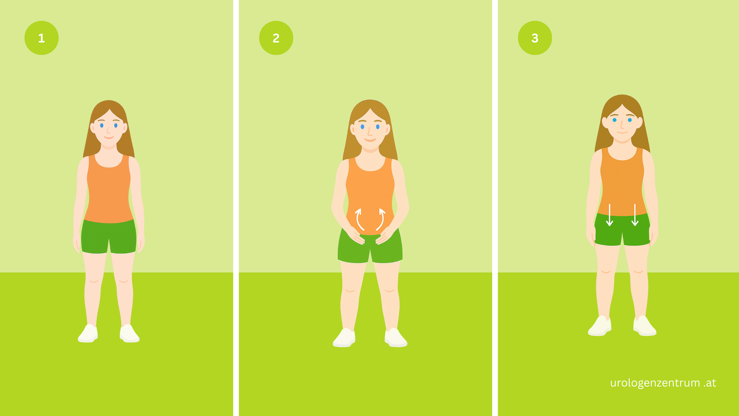 Beckenboden anspannen (inneres „Hochziehen“).